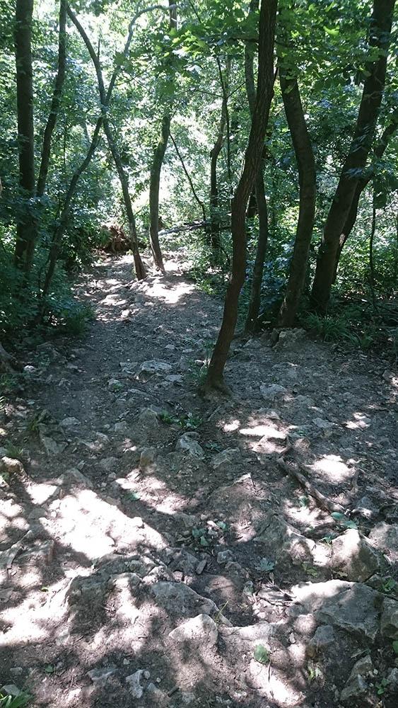 Az útvonal Csillaghegy felé vezetett, majd a strand mellett elfordulva rögtön az első kis kaptató jött, fel az Ürömi úton végig. Üröm határában tért be az útvonal először erdős részre, fel a Péter-hegyre. Akkortájt ért be egy pár, amelynek női tagja úgy érezte az itiner minden egyes sorát fel kell hangosan olvasni. Én eléggé antiszoc módban voltam, annyira nem értékeltem ezt a gesztust. Próbáltam őket kedvesen előre engedni, de ők egy „te úgyis gyorsabb vagy” kijelentéssel maguk elé tereltek. Persze végig ott jöttek a sarkamban.