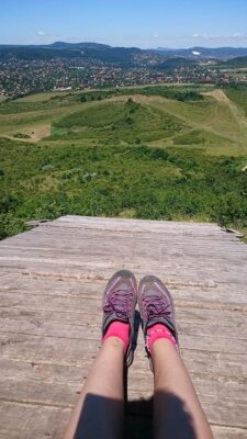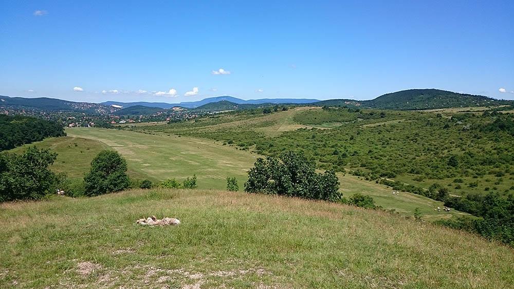 Ereszkedés közben utolért egy lány, aki szerencsére csak a tempómban jött, a száját nem tornáztatta. Neki szintén hálás vagyok, mert ha Ő nincs nem találom meg a következő ellenőrzőpontot, amit bár szépen jeleztek szalaggal, de én lazán elmentem mellette. Mondjuk, hajlamos vagyok elbambulni, ha nem egyedül megyek, akkor is ez történt. A hegy aljából is megcsodálva a kilátást, elindultunk a cél felé a kék jelzést követve. A lány egy ponton elköszönt és futva indult tovább az útnak, én sétáltam tovább kényelmes tempóban. Elhaladtam a vitorlázó-repülőtér mellett, mert úgy volt megadva az útvonal, bár mint azt mondtam a kövek felfedezése már nem hozott lázba. A repülőtér sarkától a kék jelzést követve, már gyorsan Hűvösvölgybe értem. A célban kaptam oklevelet, kitűzőt és egy kis Sport szeletet. Juhuu! A távot összesen 4 óra 10 perc alatt sikerült teljesítenem.