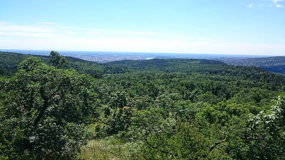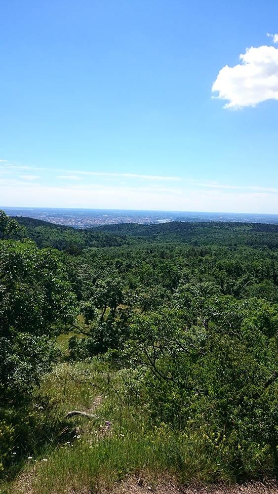 Addig ügyeskedtem, míg útitársaimnak végül sikerült lehagyniuk (az első ellenőrzőpontnál befújtam magam kullancsriasztóval, ezt ők nem várták meg). Akkor még jöttek páran, de sikerült lemaradnom egy kis tájfotózás címén. Elhagyva a Péter-hegyet, Ürömnél kötöttem ki. Megcsodáltam a kilátást, majd az utcákon keresztül lebaktattam az Ürömi vasúti megállóhoz, ahol a második ellenőrző pont volt.