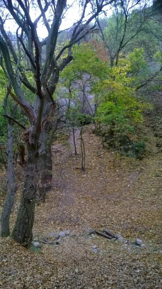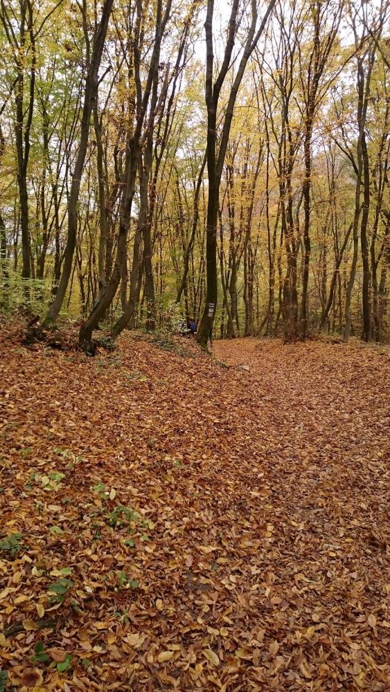 Indul a túra 10:45-kor! Juhé! Elhagyjuk a települést és behatolunk az erdőbe. Mellettünk az Ördög-árok, mely egy időszakos patak a Duna budai torkolatú mellékvízfolyásainak egyike. A patak a Budai-hegységben, a Nagykovácsi-medencében ered. Nagykovácsin, Remeteszőlősön és a Remete-szurdokon keresztül érkezik Hűvösvölgybe. A Városmajor, a Maros utca, a Vérmező, a Horváth-kert és a Döbrentei tér alatt végigfolyva, az Erzsébet híd fölött éri el a Dunát. A Remete-szurdokban vagyunk, ami a Remete-hegy és a Hosszú-Erdő-hegy között található. Mindkét oldala meredek, sok helyen sziklás. Csaknem 20, kisebb-nagyobb, karsztvíz formálta barlangot rejt, melyek közül kettő fokozottan védett barlang, a Remete-barlang és a Remete-völgyi Felső-barlang. A szurdok barlangjaiban jégkorszak előtti állatok, például hófajd, barlangi oroszlán, barlangi medve, barlangi hiéna maradványait tárták fel.