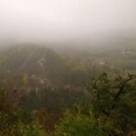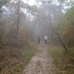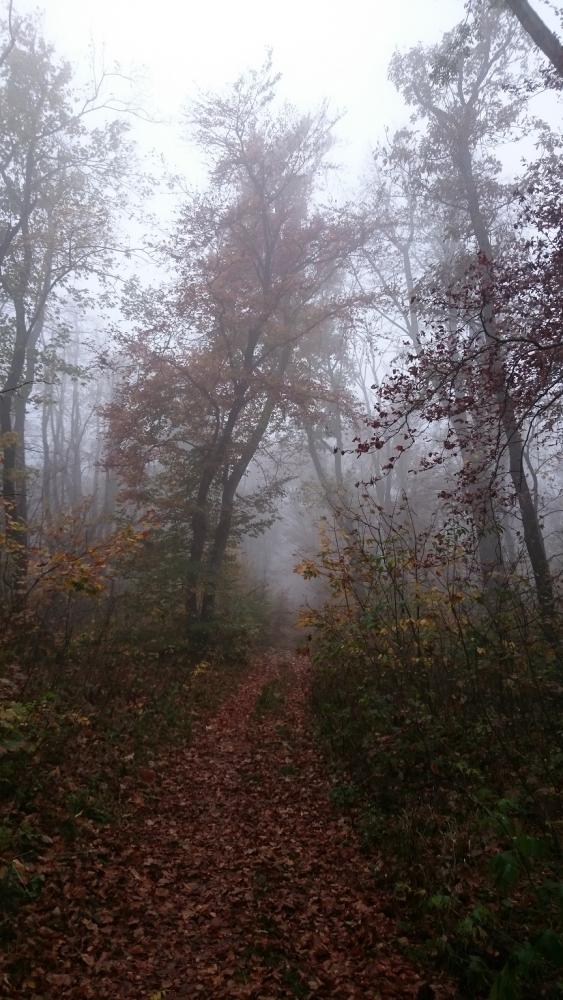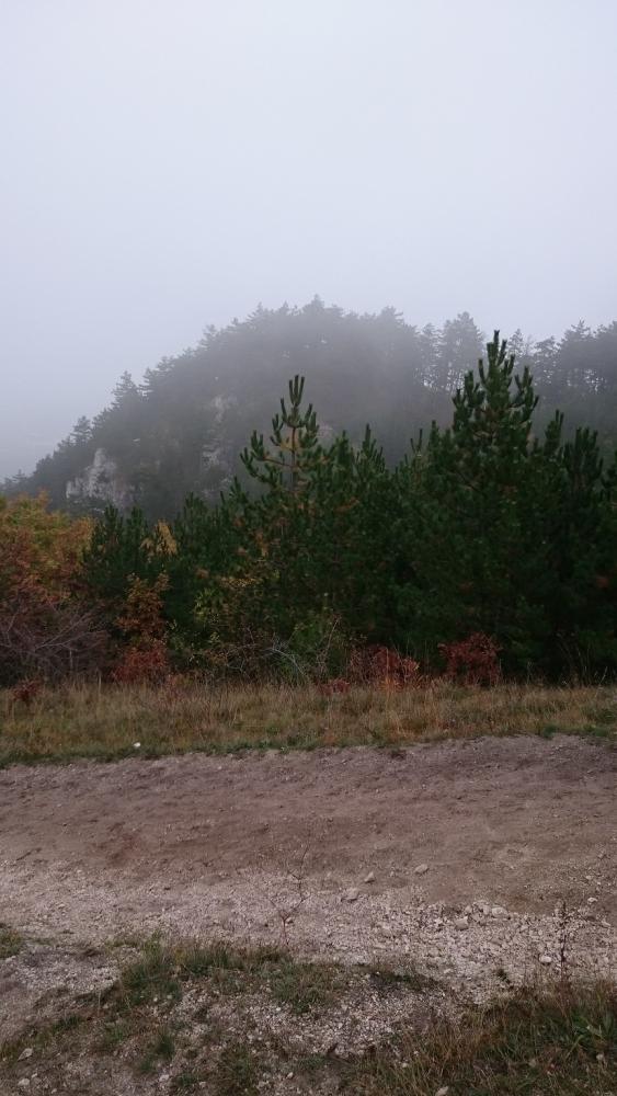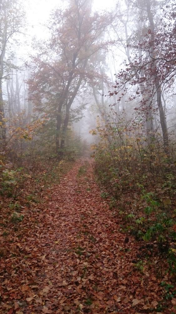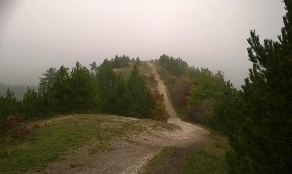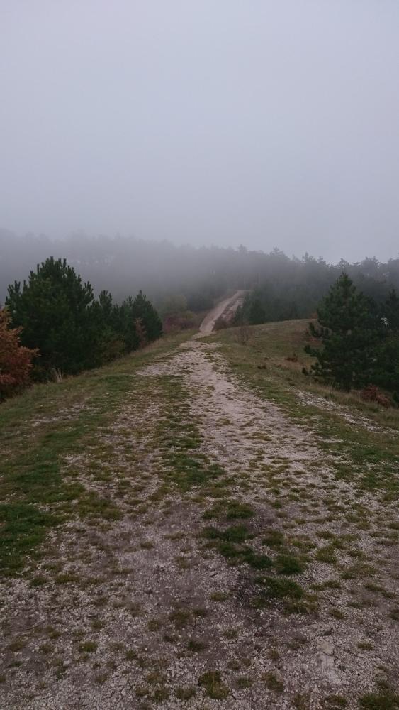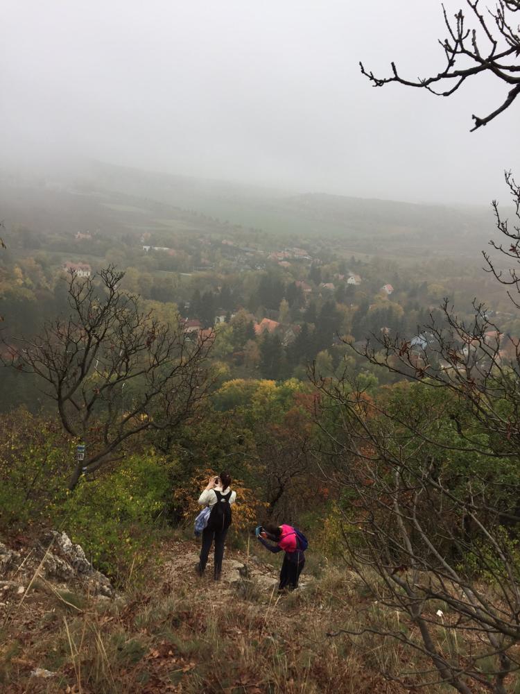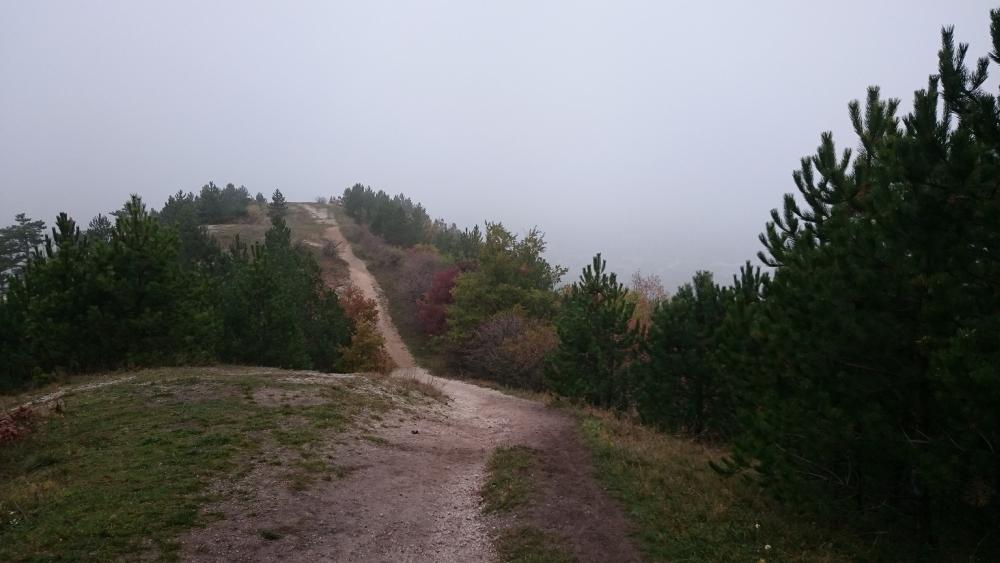 A Zsíros-hegyen folytattuk utunkat, és a következő kilátópont sem volt semmi, mely talán még az előzőt is überelte. Én csak úgy hívtam, hogy út a semmibe! Köd volt, ezáltal pedig még lidércesebb volt a táj hatása, alattunk Nagykovácsi terült el. Egy ideig nehezen tudtunk betelni a látvánnyal, de sajnos nem volt más választásunk, így kénytelenek voltunk visszafordulni. Már csak azért is, mert egyszerűen nem volt út tovább.