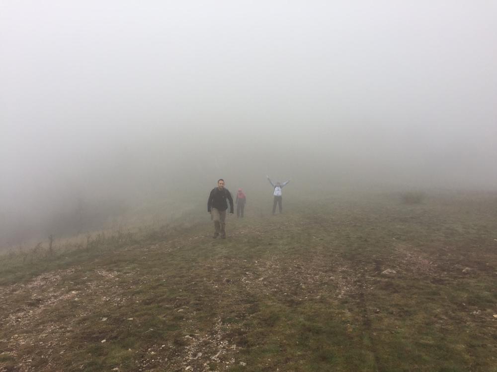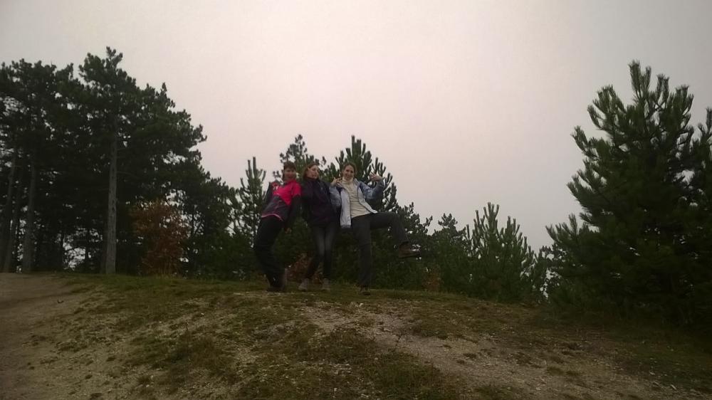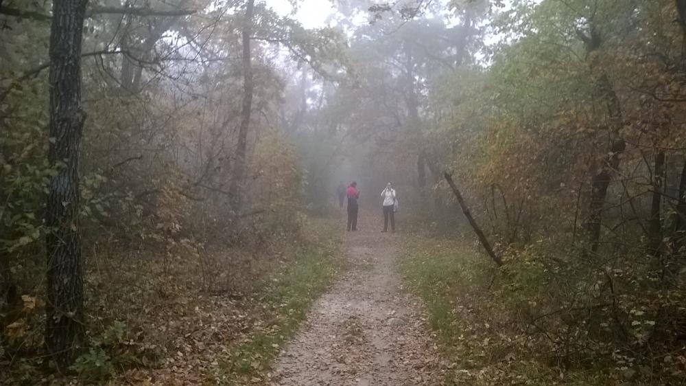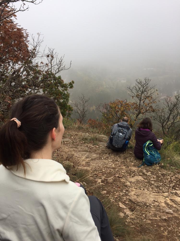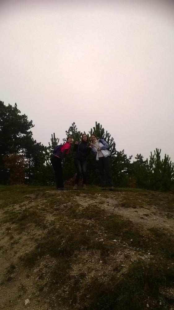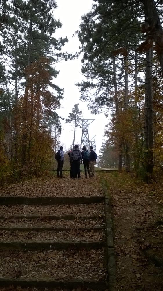 A pilisi szénbányászat egykori homokszállító kötélpályájának megtekintését követően irány fel a Nagy-Szénásra! Baromi jó kilátásunk lett volna, ha nem lett volna akkor a köd ott fent a dombon. Elfoglaltunk egy padot, hogy tisztességesen megebédeljünk, aztán viszont folytattuk tovább a túrát, mert igencsak hűvösre fordult az idő a magasban. A „nagy dombról” való lejövet kis eltévedésbe torkollott, de aztán gyorsan jó irányba álltunk és a domb túloldalán ereszkedtünk/futottunk le.