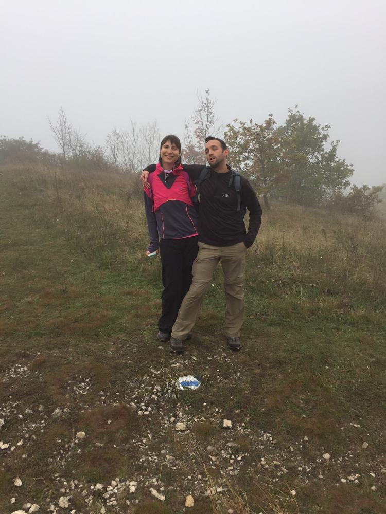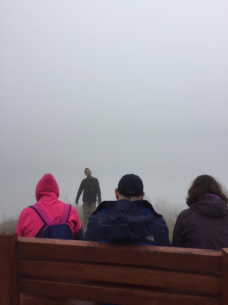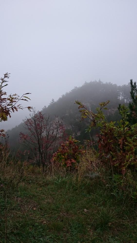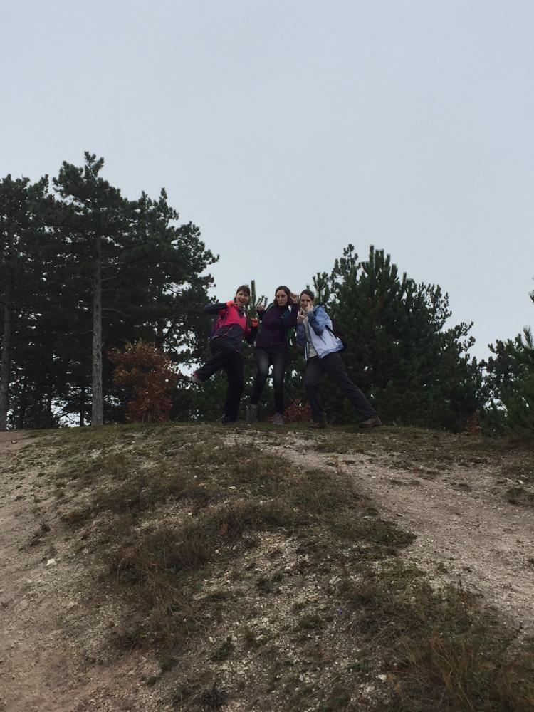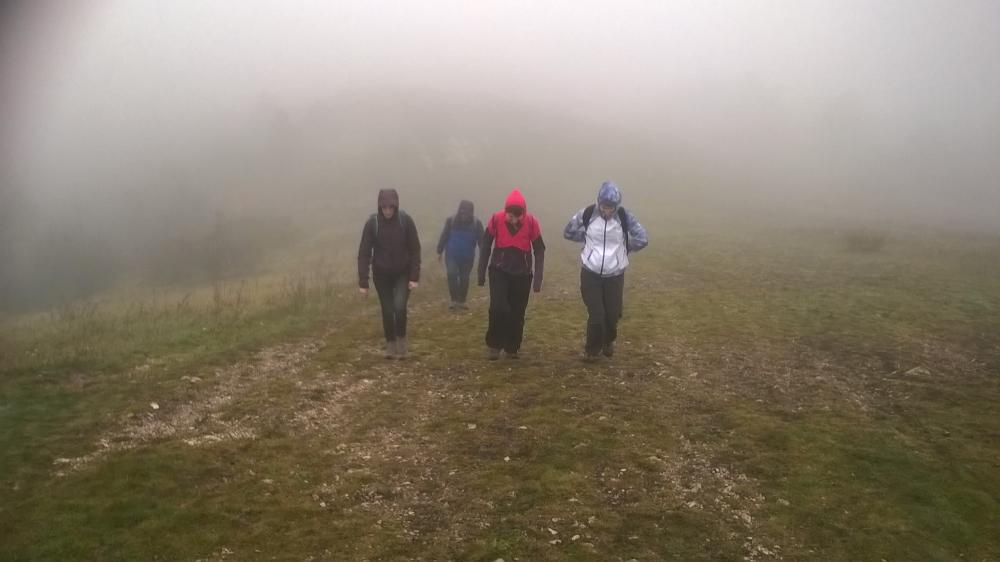 A pilisi szénbányászat egykori homokszállító kötélpályájának megtekintését követően irány fel a Nagy-Szénásra! Baromi jó kilátásunk lett volna, ha nem lett volna akkor a köd ott fent a dombon. Elfoglaltunk egy padot, hogy tisztességesen megebédeljünk, aztán viszont folytattuk tovább a túrát, mert igencsak hűvösre fordult az idő a magasban. A „nagy dombról” való lejövet kis eltévedésbe torkollott, de aztán gyorsan jó irányba álltunk és a domb túloldalán ereszkedtünk/futottunk le.