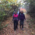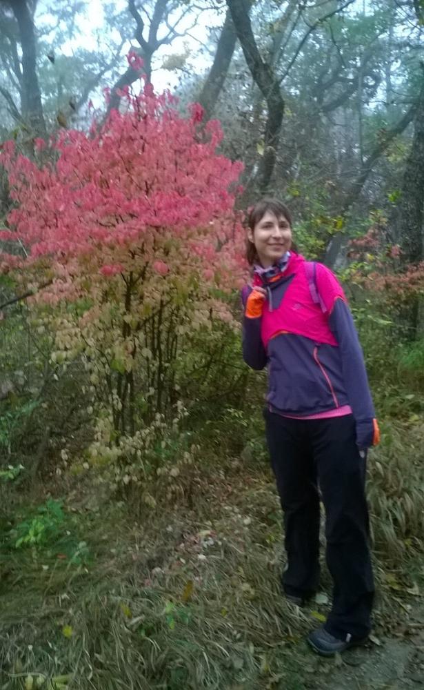 Innentől jöhetett a túra lájtosabb része, a várva-várt ereszkedés. Mellettünk bal kézre fent a Kutya hegyet láthattuk, miközben kellemes kis erdei ösvényen haladtunk egyre gyorsabb tempóban lefelé. A rózsaszín kórónál mondjuk elidőztek kicsit a lányok, de aztán nem volt mese, szigorúan menni kellett tovább a cél, azaz Nagykovácsi felé. Az erdőből kiérve egy vadkerítésen kellett átjutni, amit kétféleképp lehetett végrehajtani. 1. a fa forgóajtón át. 2. a szakadt létrán átmászva. Innen már csak 3 km várt ránk Nagykovácsiig, amelynek központjába 16:15-re értünk oda, pont akkor, mikor elkezdett esni az eső. Így kell ezt csinálni!