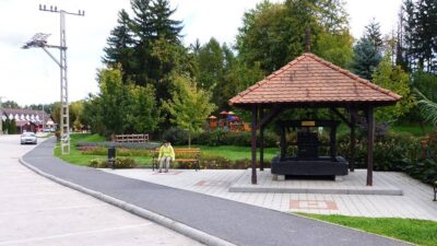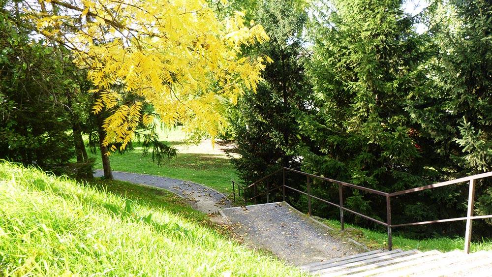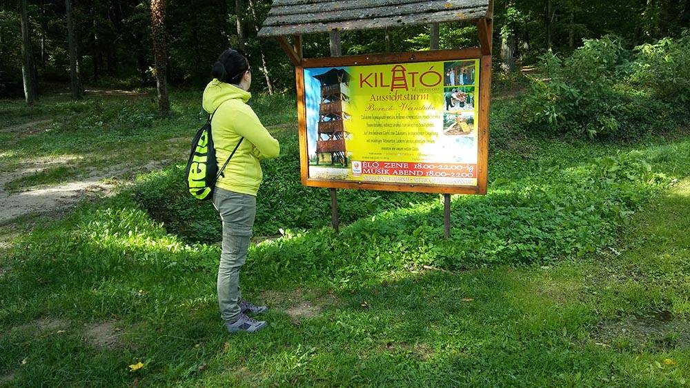 A Hotel Karos Spa-ban szálltunk meg, ezért innen indítottuk a környék felfedezését. Különösebb terv nem volt, de a kilátót mindenképpen útba akartuk ejteni. A Park utcán felsétáltunk az autóbusz fordítóig, itt tábla jelezte a kilátóhoz vezető utat. Elindultunk az erdőben a Csiga-túra tanösvényt követve.