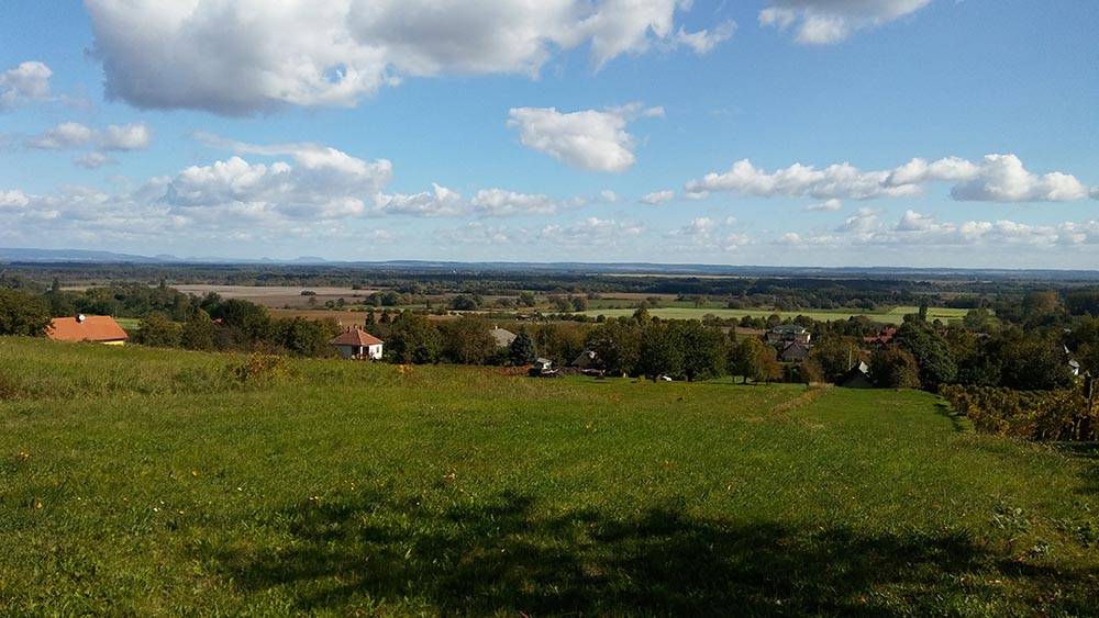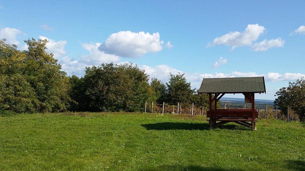 Rövid erdei bolyongás után kiértünk a fák közül, és a sárga jelzés mentén haladtunk tovább. Innentől a jobb oldalon végig csodás a kilátás nyílik Zalakaros szőlős vidékére. A jelzett út végén egy kilátópont található, ahonnan fele annyit sem lehet látni mint az ide vezető úton. Nem is értem miért így nevezték el. Na de majd a nagy kilátóból biztos szép panorámát fogunk látni!