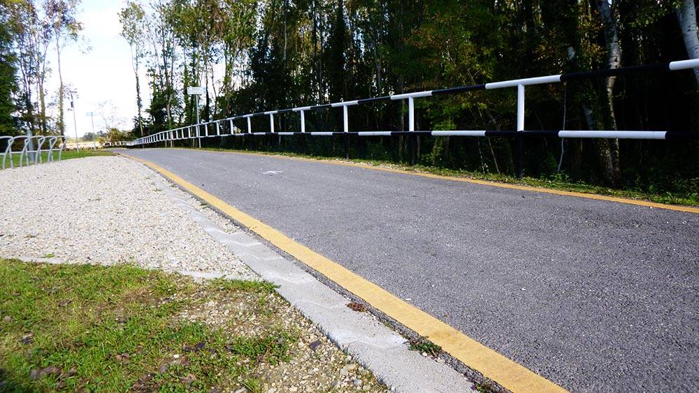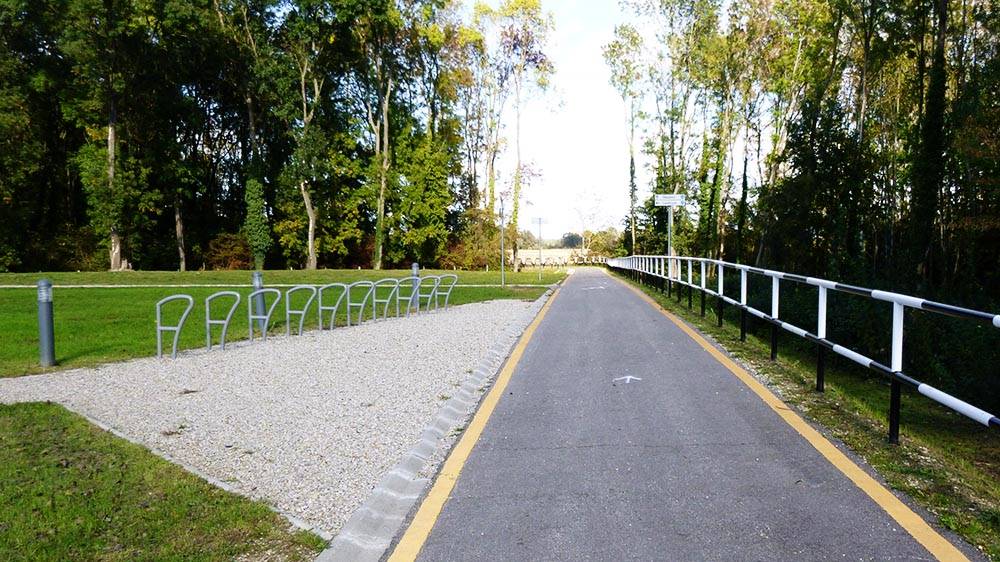 A másik oldalon tökéletes minőségű kerékpárút vezet, amin akár görkorival is simán lehet közlekedni. Itt található a „fények meditációs tere”, melynek lényege, hogy a fénycsíkok helyzete folyamatosan változik, mert a föld forgásának köszönhetően a nap mindig máshonnan világítja meg.