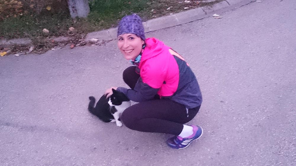 Lefelé az Aranyember útját, azaz a Jókai Mór-tanösvényt (kb. 1 km) választottuk, hogy ne ugyanott menjünk vissza, ahonnan jöttünk. A lefelé ereszkedés közepette olykor csapattuk a futást, de azért nem ártott figyelni, mert eléggé köves volt a talaj. Elértük a Tamás-hegyi keresztet, ahonnan egy eléggé meredek lépcsősor vezetett lefelé. Itt még figyelni kellett a lábunk elé, aztán viszont kiengedtük a futóműveket, és elértük a Tamási Áron utcát, ahonnan már ismerős volt a visszaút. Szűk egy óra alatt abszolváltuk a kb. 7 km-es távot, úgy, hogy ebben még egy macskasimogatás, és a legvégén a Kiserdő ösvényein való eltévedés is benne volt.