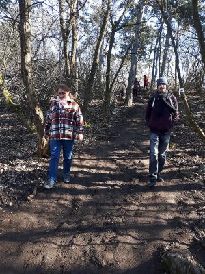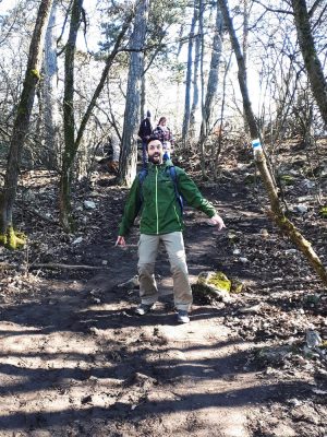 Február végéhez képest rendkívül kellemes, 10 fokos, többnyire napos, a magasabb pontokon hűvösebb szelesebb időben teljesítettünk a túrát, amit közepes nehézségűnek mondanék (hivatalosan könnyű). A kék sáv jelzések – melyek sok helyen elég friss festésűek – végig tökéletesen követhetőek, eltévedni így nem nagyon lehet, térkép nélkül is bárki könnyedén elboldogul. A telefonos túra-appot pláne felejtsük el, inkább élvezzük a túra adta élményeket!