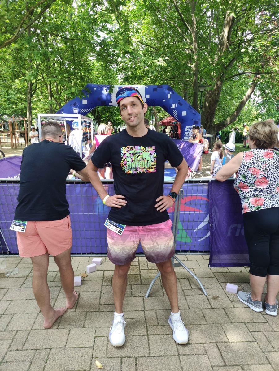 A 10., jubileumi keszthelyi triatlont pont a Geszosz Peti legénybúcsújára szervezték, vagy az övét a versenyre, nézőpont kérdése, de mivel a Zoli és a Gabi is indultak az UTE-ból, ráadásul ez volt a félironman országos bajnokság, így – hosszas dilemmázás után – én is beneveztem 55 ezerért. 2021-ben ugyanitt egy sörös nyereményjáték nyerteseként ingyen és bérmentve indulhattam! 3 év múltán pedig újra a Balcsiban vártam a rajtot. Sajnos még mindig nem jöttem ki teljesen a betegségemből (Covid?), ekkor már 2 hete köhögtem (!), de a verseny után végre elmúlt a dolog, szóval gyógyító erejű a triatlon!