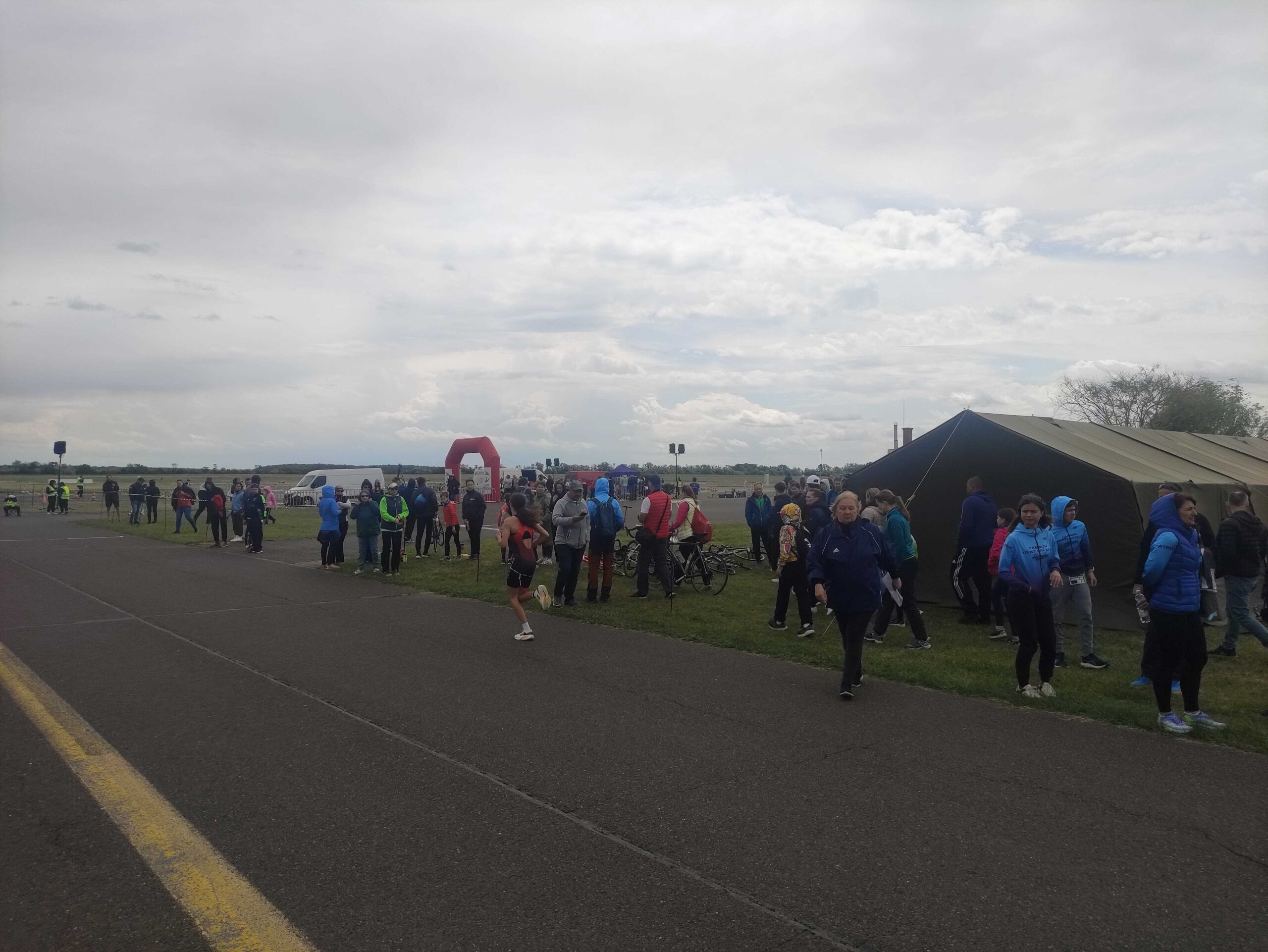 Nedus csábított le, aki itt volt katona, szóval neki némileg hazai pálya volt ez! Én meg a Verát, így összeállt a jól megszokott kis mesterhármasunk. Csak az időjárás mindig a kérdés, ugye, Vera? Szél volt rendesen, eső is az M4-en lefelé, aztán szerencsére utóbbit megúsztuk a versenyen. Oldalszél mondjuk kőkeményen fújt már a futás alatt is, a kifutópályán kijelölt totál nyitott bringapályán meg el lehet képzelni milyen lökések voltak!